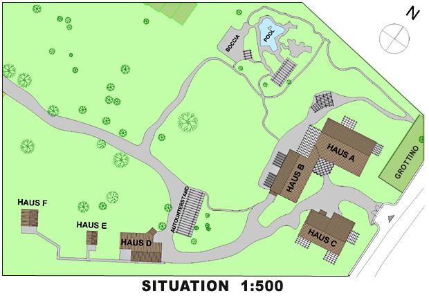 Anlageübersicht Haus A-D, Umgebung mit Luftaufnahmen